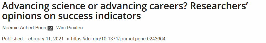 我们的研究进一步丰富了现有关于研究人员工作习惯、意愿及其对科研与评估态度的认识。具体而言,本研究更细致地剖析了用于评估科研成功的具体指标,分别探讨这些指标是否真正有助于推动科学进步、提升个人满意度,或仅服务于职业晋升而未对科学或个人发展带来同等贡献。